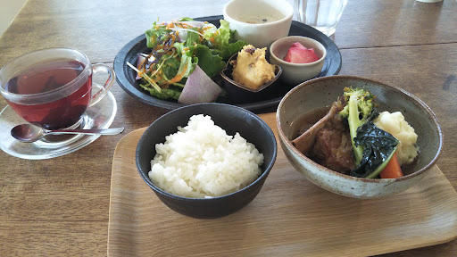こちらはランチプレート。 おー、これはヘルシーなビジュアルです。 多分私だと物足りなさを感じそうかなと思ったけど 具沢山でいろいろな味を食べられるので満足度も高いもよう。 かぼちゃのポタージュが甘みがあって美味しかったです。