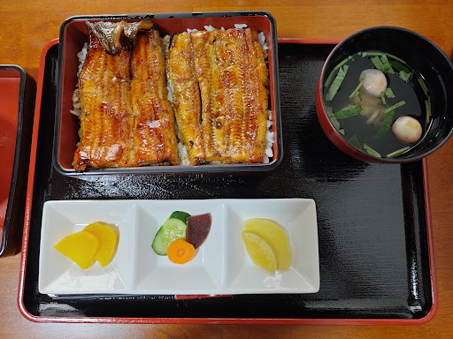 Read moreぶどうを買いに毎年勝沼へ来ています。いつも気になる風情ある店にやっと入店しました。 うな重の上をいただきました。蓋を開けると香ばしい湯気が立ち上り、米飯がほとんど見えない視覚と相まって期待感も上がります。 鹿児島県産のうなぎは肉厚で、ふっくら仕上がっていて箸が抵抗なく通ります。関東人の舌には、甘さが最小限のたれですっきりしています。お醤油の角や塩味を丸くするためだけに甘味を使っている感じです。米飯が多めで食べ応えあります。肝吸いは昆布出汁が効いていて甘みがあります。これも関東人には珍しく楽しくなります。おそらく自家製の糠漬けはしっかり乳酸菌が働いているいいお味で、口直しに良し。もう少し多いと嬉しい美味しさでした。 味、量共に十分満足のうな重が、二人分で税込み6千円(2022年9月)でおつりがくるなんてかなりのお値打ちだと思います。 年に3回くらい勝沼に来るので、ここはリピ店になりました。 PKは店舗入り口の直ぐ手前です。通り過ぎてしまったら、信号を左折して店舗裏からも入れます...