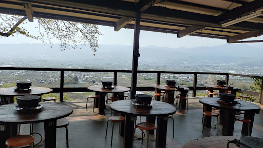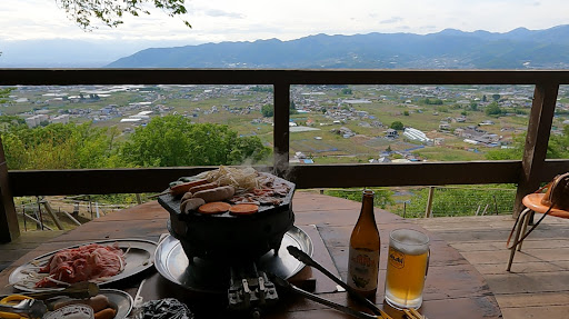 Read more高台ならではの絶景を眺めながらバーベキューが楽しめます。こんなに眺望の良いバーベキュースポットはなかなかお目に掛かれないのではないでしょうか。営業時間は11:00~17:00(ラストオーダー16:00)です。 今回は牛・豚ロース・ソーセージセット(2,750円)を注文。ソーセージが無いと少し寂しい気がするので、ソーセージセットがお勧めです。あと追加でラム(1,100円)も頂きました。そしてもちろん国産ワインも。 あまり量は呑みませんでしたが、お会計は約4,400円/人と、決してリーズナブルでは無かったです…が、驚愕する程の高値でもありません。 天気が悪いと100%楽しめないと思うので、ここはぜひ気候の良い日に訪れてください。