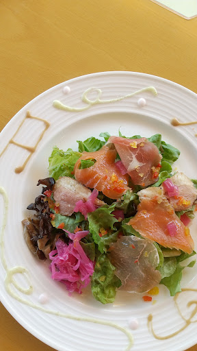 Read more【蝶】コース ¥2,860 サラダ仕立てオードヴル スープ 魚料理 肉料理 デザート盛り合わせ 感謝主揪努力的找到這間CP值超高的店 餐廳擁有自家大庭院 差點找不到用餐的入口 當天特別隔出一個獨立空間供我們使用