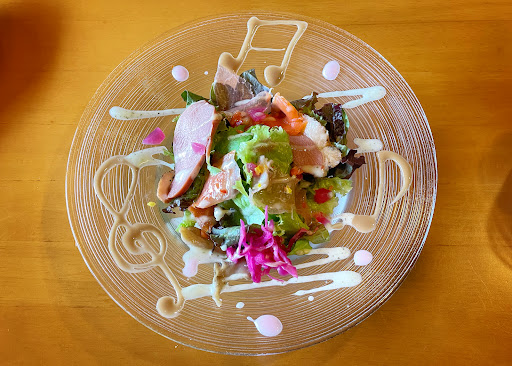 Read more塩山駅近くのフレンチダイニングです。 一見すると立派な日本家屋なので門をくぐるのに少し躊躇しましたが、お店のサービススタッフはとても丁寧でフレンドリーな方々でリラックスして食事を楽しめます。 お料理は肩肘張らないフランスの家庭料理で、お箸のご用意もありました。 私は特に肉汁溢れる和牛のハンバーグステーキがとても気に入りました。口の中で肉の旨味が弾けるように溢れてきて、軽やかな赤ワインのソースと足並みの揃った味わいです。 また、お料理は美しい庭を臨む和室で提供されるので、次の皿を待つ合間も目を楽しませてくれます。 お昼とはいえとてもお値打ちなコースで大変幸せな時間でした。 塩山を訪れたら必ず...