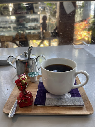 The black coffee was decent and it came with a nice Italian cherry liqueur chocolate. The cost of the light meals was very affordable. French toast was only 500 yen! A light meal + coffee is 100 yen off. My partner ordered hot sandwich which was also tasty. The woman serving us was respectful and reserved but kind.