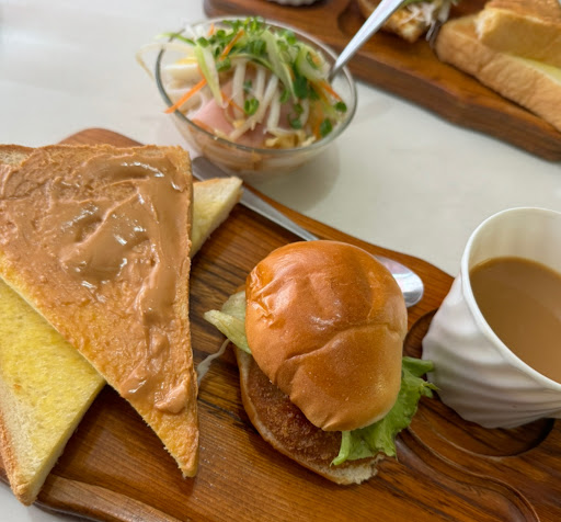 コーヒー、紅茶、ミルクティー450円の飲み物のみでモーニングがついています。ハム、ちくわ、キュウリが入っているサラダだと思ったものは温かいそばが入っていて大根おろし、生姜のおろがはいっていて小さな器にたくさん入っていました。パン類は2つあり、食パンは1枚分で半分に切ってありバターとピーナッツバターが塗ってありました。おまけにミニハンバーガーもついていて中にはサラダとたまご、コロッケ半分がはさまれていました。他のモーニングのお店よりも量は多いと思います。奥さんはとても優しそうでした。入る時は階段を登ってお店なので、お客さんがいるように見えなくて、営業されてるかも外から見にくいので不安でしたが、営業中と書いてある看板とでんきがついているのがガラス越しに見えたので入って良かったです。席は5席?のテーブルにソファーです。壁や天井に凧が貼って?、飾っていました。 自分は近くにあれば毎日行きたいお店だと思わせてくれるお店です。が、混みすぎて、うるさくなったりお子さんが走り回ったりするスペースはないので込みすぎたりしても困るお店かな?とおもいました。またお顔をみにぜひ行く思います。また行く...