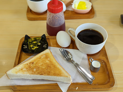 Read moreホッとできる喫茶店。 モーニングは450円でパンも柔らかくてジャムも美味しい! ゆで卵も半熟(気遣いがありがたい)、メロンソーダ色のゼリーも大変美味でした! 少しだけコーヒーが苦すぎた。...