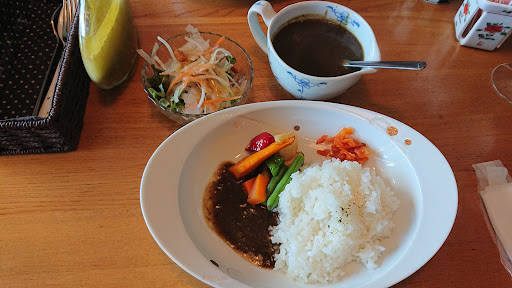 とても雰囲気のいいダンディなご主人がいる創作フレンチレストランです。 黒ごまカレーランチを注文。 彩りの綺麗な盛り付けの黒ごまカレーは味わい深く、とても美味しかったです。 店内は有田焼の器を使われています。 コーヒーor紅茶は100種類以上あるカップの中から自分で選ぶことができ、焼き物が大好きな私はワクワクしました。 デザートもたっぷり濃い味のアイスクリームが味わえました。 また他のメニュー...