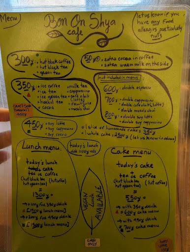The couple that runs this restaurant had been very kind to me and a friend on our first trip to Japan. My friend had to go see a doctor due to a condition with his foot, and the doctor spoke very limited English, I spoke very limited Japanese, and my friend only knew a few phrases. The couple that runs this restaurant are a man from Japan who spoke fluent Japanese and French and a woman from France who spoke fluent English and French. Long story short, a memorable game of "telephone" ensued and the situation got under control. Unfortunately it was our last day there so we could not visit the cafe on that trip.
