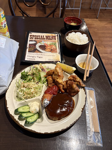 It was a heavily snowy day. I ordered the food called hungry tiger and when finished eating, i noticed there is little food I bought from familymart in my bag so I ask the waitress if I can eat them so that it won’t turn cold. I got rejected sadly. It’s fine since it’s their written rule?
