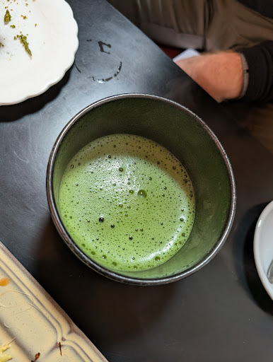 This unassuming place is on Koyasanâs main street so easy to find. I was intrigued by the sign outside about banana soy milkshake being a nostalgic taste of childhood ( or words to that effect) but I must admit when I first looked inside I was a bit surprised by the eclectic decor and ambience ( quiet) so I quickly carried on to where I was going. However after a long mountain walk the idea of a banana soya milkshake seemed very appealing. So I headed back. Iâm so glad I did. The owner is lovely and the service is attentive with water being brought quickly. The menu is short but to the point but each item is produced with love and care. As I sip my banana soy milkshake I begin to appreciate the quirky irreverent interior which manages to combine kabuki masks, a vintage non working clock and items of 1960s office furniture with old 1980s photos of Koyasan. Intrigued by what a matcha chocolate cake is I order it. A taste sensation is what it is. So good I was tempted to order another one straight away. The coffee is very good and strong ( perfect before a long mountain walk). The bathroom is clean and bright though you have to walk through what feels like a woodworking area to get to it. Quirky without being contrived is how I would describe this place. Subsequent visits revealed a scrumptious cheesecake and a matcha latte that looked as good as it tasted ( I ordered a matcha latte elsewhere in Koyasan and got a small cup of insipid green milk) but here I got the real deal. Rich creamy and frothy. Fantastic. I could see people walking past and occasionally popping their heads in and quickly deciding it wasnât the place for them. It was their loss. This is a âmust visitâ while...