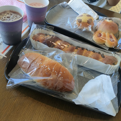 It opens at 6:55 am. I think the point is so good for you. Because generally, almost cafes in Japan open in late morning. But here, there is an eating space on 1F and 2F. you can enjoy breakfast as drinking some caffee. You can parchace a large variety of breads here. Croissants, sandwitches, burgers, pizza? Of couse they have! Not only that, but alse you can enjoy many kinds of Japanese style breads. They don't have sourdoughs, though. The atmosphere is also good. Staffs are all friendly and kindly. You can choice any breads as you like. It's good for family. There is a kid's space. And credit card is available here. But beverages are cash only. If you'd like to re-oven your breads, Oven toaster is available.