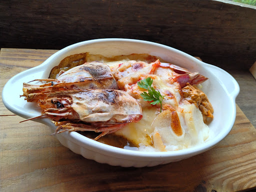グラタン単品なら1500〜2000円。 前菜・ドリンク付で+500円くらいです。 前菜はサラダに鴨ローストとサーモン一切れずつ、蒸し鶏のほぐし身です。サラダには柿のドレッシングがかかっており、これが程よいフルーツ感でとても美味しかったです。 コンソメスープは自家製コンソメを使用しており、これが本当のコンソメスープなのかと感動する美味しさでした。 グラタンは3日かけてつくるベシャメルソースを使用しているらしく、これが滑らかで濃厚でした。ペンネとドリアを選べ、ドリアが100円ほど高く、スタッフはドリアを推してきます。ペンネを選んでいましたが二皿ともドリアに。具材として魚介が乗ってるものをセレクト。妻は「このプレートには好きしか詰まっていない」と喜んでいました。海鮮グラタンには有頭海老2尾、ウニ、ホタテ。海老は味噌が食べやすいように頭が開かれています。私は牡蠣のグラタン。牡蠣4つ並んでいました。3つ妻に持っていかれましたが、濃い味でした。牡蠣好きにはたまらないでしょうが、多少癖あり。苦手な人のチ...