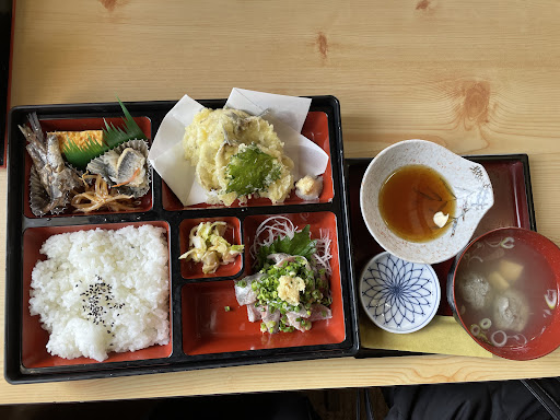 この10年程でしょうか。年に数回伺っています。 驚きと言いますか、本当に客側としては、感謝の気持ちですが、今回もいただいた、【いわし弁当】、10年来、お値段が変わっておりません(多分💦)。 かつては、いわしの九十九里と言われただけあって、このいわし料理が並んだ【いわし弁当】を選んでしまいます。 今の時期は、背黒いわしを使ったお料理になります。 お刺身、天ぷら、南蛮漬け、いわしの煮付け、つみれ汁です。 これで1600であれば、今のご時世涙です。 店内には、マスターが撮られた九十九里の初日の出の写真や、芸能人の方の色紙が飾られています。 お店外の水槽では、アジが泳ぎます。 いつか、隣席にいらっしゃった方からいただいたアジのお刺身、美味しかった〜 できることなら、活きアジ定食を選択肢に入れて下さいね^...