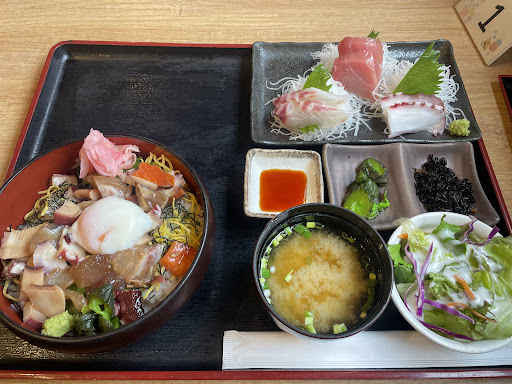 Read moreこちらにお店ができた当初、○○○ばんやとあったような記憶があり、新しくなってもまだ、不動堂ばんやさんと繋がりがあるものと思っていましたが、店長様らしき方とお話をし、そうでない事がわかりました。 ドゥカーレ和海さん、ばんやさん、申し訳ありませんでした。 前置きながくなりましたが、雨降りの火曜日、不動堂から傘差しの歩き。初めて寄らせていただきました。 娘に見せてもらった海鮮丼にしようかと思いましたが、名前に惹かれ、こちらのまかない丼にしました。 実は、食べられなくはないのですが、タコ刺しは避けて通りたい派な私です。…タコの比率が高い漬け丼的まかない丼でしたが、ご飯のみ残して完食✨(ご飯は持ち帰りました) お魚達に沁みた漬け具合が美味しかったです。 お天気ゆえか、先客は、ご夫婦お二人しかいらっしゃいませんでした。 店長様らしき方が、ご挨拶に来られたのは、嬉しかったです。 この先も九十九里町を盛り上げて...