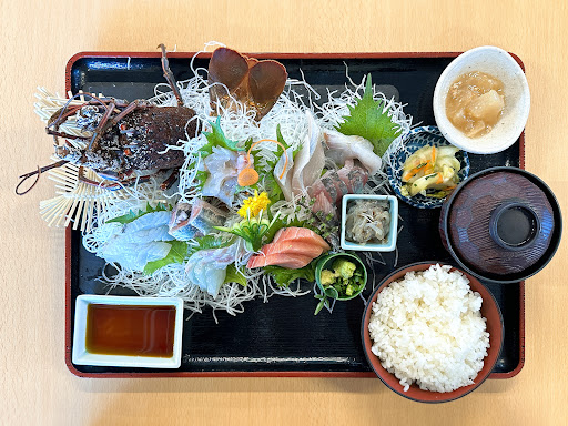 Read more昼に入りました。 海の駅の2階に在るフードコートの店の一つです。海鮮が売りの店ですが、他の店舗が券売機で券を購入するのに対して、此方は口頭で注文して先払いに成ります。ブザーを渡されるので、鳴ったら取りに行くシステムです。 フードコートなので、席は共同です。平日の割りには混んでいて、席が足りていない様でした。夏休みとあって、家族連れが多いからかもしれません。 頼んだのは《特選日替り海鮮刺身定食》1900円。クレカ使えました。 魚は《マグロ》《タイ(炙り)》《カンパチ》《タコ》《イカ》《アジ》《イワシ》でした。小鉢でヒジキが付きました。 流石にアジとイワシは鮮度が良くて脂のノリが良かったです。カンパチは腹身で、歯応えが良くて、此方も脂がノッていました。 しかし、マグロ、タイ、タコイカはイマイチ。マグロは味は悪くないですが、筋が多い部分で口当たりが悪かったです。タイは脂のノリがイマイチで、鮮度も良いと言う程ではないですね。タコとイカは輸入物かも。タコはモロッコかモーリタニアの物だと思います。地ダコを期待しただけに残念。イカは歯応えも味も悪かったです。 白飯は普通盛りにしては少ないと思いました。私のカンカクでは小盛りですね。健啖家には足らないと思います。私は足りませんでした。 ヒジキはまあまあ。漬物はイマイチ。味噌汁は良い出汁でした。 値段を考えたら悪くはないですが、刺身は物によってかなと思います。刺身定食ではなく、イワシやアジをメインにしたメニューを選ぶば良かったと思いました...