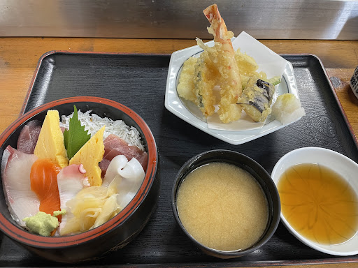 お客様からのおすすめもあり、❗️年振りの来店。 鰯料理も食べたかったのですが、昨日、他の店で、鰯が上がって来ないとの貼り紙を見、別メニューに。 海鮮丼と天ぷらのセットを選びました。 定食物、他にも沢山あるし、お値段もまずまずです。