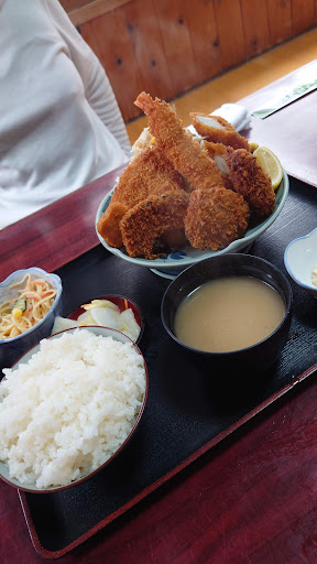 もちろん味も良いし、量が多い!! エビ・イカ・カキフライ・アジフライ・メンチ・かぼちゃ・ナゲット 7品目も入って1320円(この日は日替わりランチだったのでここから110円引き) お新香・スパサラまで美味しかった♪ ご飯は何も言ってませんが大盛りの量!なめこと豆腐のお味噌もグッド⤴