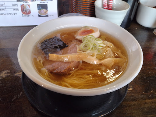 Read more久喜の友人に連れていってもらいました。 地元の人にしか分からない場所で、周囲の年季の入ったお店の感じがいい雰囲気です。 お店はテーブル2つとカウンター数席、入口ドアの位置が悪くてスペースが無駄になっているのが勿体ない感じです。 メニューはラーメン類とご飯モノが少し。 チャーハンや餃子はありません。 自分は中華そばをいただきました。 トッピングに味玉子。 ラーメンはあっさりしていますが、鶏ガラと豚肉のダシがよく出ていて 後味のいい美味しいラーメンでした。 連れは濃口醬油ラーメンを食べました。 こちらは魚粉が溶け込んだスープ。濃厚でしたが魚粉特有の臭みやえぐ味が無くて いいバランスの味だと思いました。 特筆したいのはチャーシューです。 厚めに切ったチャーシューは柔らかくとても美味しかったです。 自分は中華そばがとても気に入りました。 メニューには油そばや辛いラーメンや台湾ラーメンがありますが、友人によると台湾ラーメンは少し塩っぱいそうです。 また友人と久喜で飲んだら、締めに...
