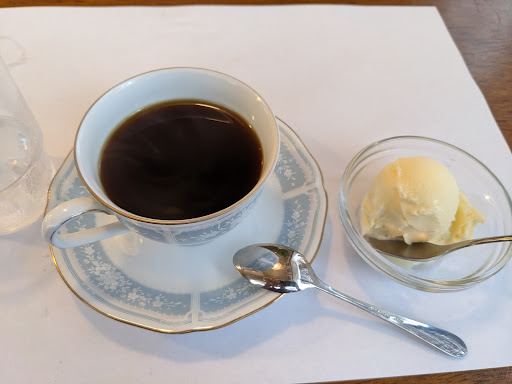 お友達のリクエストにより本日お初に来店しました! お店の雰囲気は昔ながらの大人の喫茶店☕️🏠️ 私はデミグラスハンバーグのセット、お友達はアナウンスのあった(メニューには載っていないらしい😁)和風ハンバーグ🍴 小鉢(切り干し大根)←盛りが多いです👌お漬け物、サラダ。 ハンバーグの添え物が◎ ニンジンのグラッセ(🥕かなり厚切り、甘くて美味)お茄子(大好き😍)よくばってお肉200gにしてしまったのでお腹🈵 食後のアイスコーヒーが来るなーと見ていたら、なんとバニラアイスも来た➰💠お友達と👀‼️ 私たちの他のお客様たちは常連さんが多いようでした🍀 初めてのお店でうれしい誤算が満載で大満足のランチタイムでした。 今度は旦那様も連れてきてあげようかな😃(残念ながら今回�...