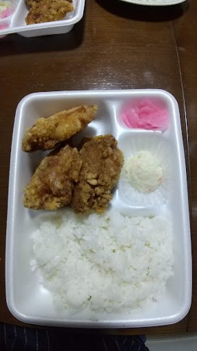 小僧寿しだけでしたが、いつからかからあげ屋さんも一緒になっていました。 唐揚げは以前単品で注文して食べて美味しかったので、今回は唐揚げ弁当を購入しました。唐揚げはノーマルのものを購入しみした。他にはチキン南蛮とか油淋鶏とか辛い感じのものがあります。お弁当の唐揚げの個数は小が3個、中が4個、大が5個。この日は家におでんもあったため、3個のお弁当にしましたが、1つが大きいです。付け添えにポテトサラダとお漬物が入っています。 唐揚げの味付けは美味しいです。ボリュームもあります。