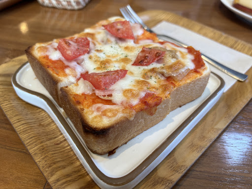 Đây là nhà hàng phục vụ nhiều món ăn khác nhau, từ bữa ăn nhẹ đến bữa chính, món tráng miệng và cơm hộp. Đĩa tráng miệng và bánh mì nướng pizza rất ngon. Cửa hàng sạch sẽ và nhân viên thân thiện. Lần tới tôi muốn đến thăm bạn để ăn trưa.