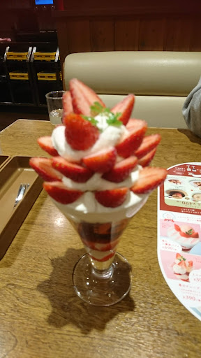飲食店です。洋食、和食と、期間限定のメニューが販売しております。久々に来店したら、ドリンクバーが、リニューアルされてました。コーヒーサーバーが、新型に変わっていて、エスプレッソ、ドリップとそれぞれ飲めるようになりました。一部コーヒーに、デカフェ(ノンカフェイン)フレーバーシロップが、キャラメル、イチゴ、ヘーゼルナッツとあって飲みたいコーヒーのアレンジすることが出来ます。さらに、一度終了していた朝食が土、日、祝日限定で定食という形で復活していて、おかずがハンバーグ、目玉焼き、鮭、ソーセージ等使用していて、ご飯、みそ汁を使用した和定食または食パン、ベルギーワッフル等を使用したモーニングプレートがいただけるようになりました。(別売で、ご飯単品、パン単品、ベルギーワッフル単品、とん汁、サラダ単品、グラノーラヨーグルト、ドリンクバー等有り)そしてVポイント、 楽天ポイントと、専用のアプリで、オリジナル ポイントが貯められて、クーポン、期間限定クーポンが配信されるだけで無く、貯まったポイントによって小皿一品または、デザート一品が無料または、5%、10%1年間割引、または、五百円食事券のクーポンが、貰えます。アプリに誕生日を登録すれば、その誕生日の月に一回だけ使用出来るバースデー...