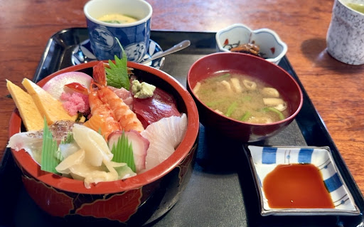 Read more夜は肉料理を食べる予定なのでランチは海鮮系🐟🦞にしようと高評価店を検索。コチラがヒット🎯したので行ってみました🚙💨駐車場は店舗の前に5台分くらい有り🅿️ 店に入る時、寿司の暖簾が2ヶ所に掛けてあり"どっちが入り口だぁ?"と迷いましたが…どちらでも良いらしいです🤣 平日AM11:25に到着。店内に先客は3組4名。 座敷席に案内されランチメニューから"ランチ海鮮丼¥1500(税込)"をオーダー🎯 待ち時間は10分強⏳少し遅め。 運ばれて来た御膳には海鮮丼の他、汁物・ひじきの煮物・茶碗蒸し✨ 🍚は冷めた酢飯👌 雰囲気・料理は至極普通。 🐟🐙鮮度も悪くはないと思います。 接客も普通でした🙄