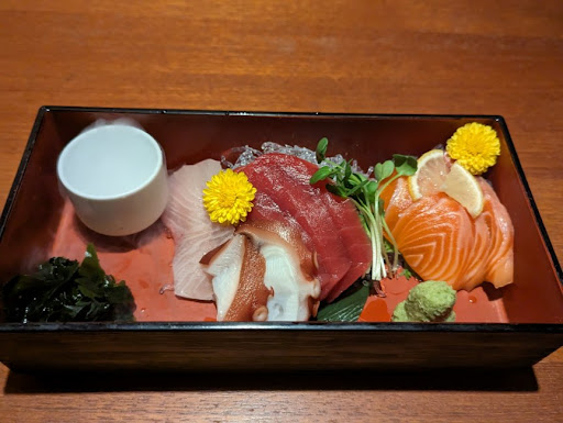 Highlights: • Caesar Salad with Chicken: Fresh tomatoes, lettuce, and tender shredded chicken, with a perfectly balanced dressing and a peppery kick. • Pickled Shallots with Prosciutto: Crisp shallots wrapped in prosciutto, a simple yet flavorful bite that pairs well with sake or whiskey. • Seafood Tamatebako: A sashimi-filled box that releases a smoky effect when opened, with fresh, flavorful seafood including tender tuna and rich salmon. • Tochio-age: A crisp, fluffy fried tofu from Niigata, served with soy sauce, ginger, and green onions—a perfect match for sake. • Roast Beef: Juicy and tender, with a simple seasoning of rock salt for full flavor. • Karaage: Crispy, juicy chicken with a savory...