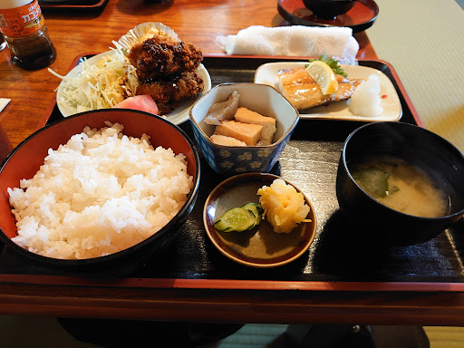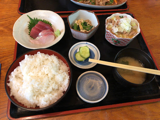 マップで偶然見つけ、こんな住宅街に本当にあるの?と言いながら辿り着きました。 夜は居酒屋さんのようですが我々はランチでお邪魔しました。 メニューの中から2品選んで、お値段1,000円くらいだったかと思います。 各料理とも、味付けが濃くめちゃくちゃ白米が進みます!お刺身も内地なのに新鮮で、思ったよりも身が厚くびっくりしました。