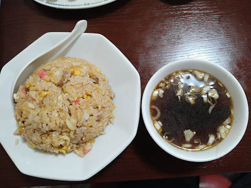 チャーハンはしっとり少し甘みがありチャーシューの塩みと相まってたしかに美味い スープは見た目真っ黒色々沈殿している独特なもの、でも塩っぱくない不思議なスープ、 どちらも全然オイリーじゃなくサラっとしていました さすが50年の熟練の匠と業でした。