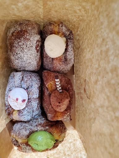 ドーナツは一つ約400円くらい。 見た目は小さめですが、中のクリームはぎっしり。 正直これが生ドーナツ?という感じ。 ふわふわなものを想像していましたが、揚げドーナツにクリーム入れた感じで、ドーナツの生地はちょっと硬かったです。 中のクリームは美味しかったです。
