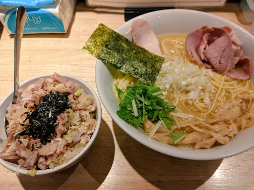 ã¹ãŒã é¶ã¬ã©ããã£ããçãããé¶ã®æšã¿ãšé€æ²¹ã®ãã¬ãããé¶çœæ¹¯ã¹ãŒããæ°ã«ãªããªãçšåºŠã§ã¯ããããçœæ¹¯ã¹ãŒãç¬ç¹ã®åŒ·ããã¿ã€ããšãè¥å¹²ã®é¶èãããããæšå³ã¯æçŸ€ãå¡©å³ã¯ãã匷ããçã¿ãæããããããã³ãã¯åŒ·ãããè€éãªåºæ±ã®å³ããã奥深ããäœã£ãŠãããæåŸãŸã§é£œããã«é£ã¹ãããããŸããæ£ããããã®ãå ¥ã£ãŠãããåŸåã«ãªããšéŠããç«ã£ãŠå³ãããå€åãã仿ããè¯ãã£ãã é¶ãšé€æ²¹ã®çµã¿åããã®å®¿åœããåŸå³ã«è¥å¹²ã®ããã³ã©ãŒã¡ã³ã£ãœãããã£ãã
