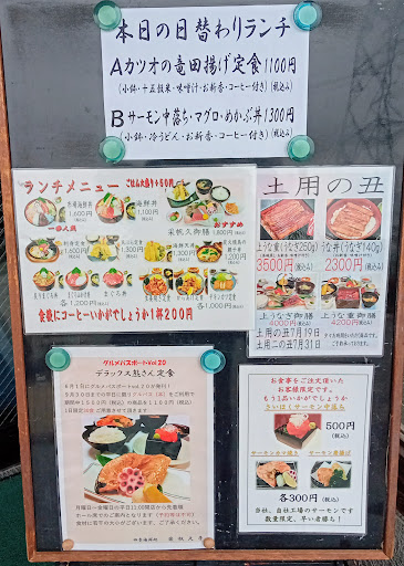私は「グルメパスポート」での割引で 1500円が1100円になった「デラックス熊さん定食」 家族はランチの丼物、900円を頼みました。