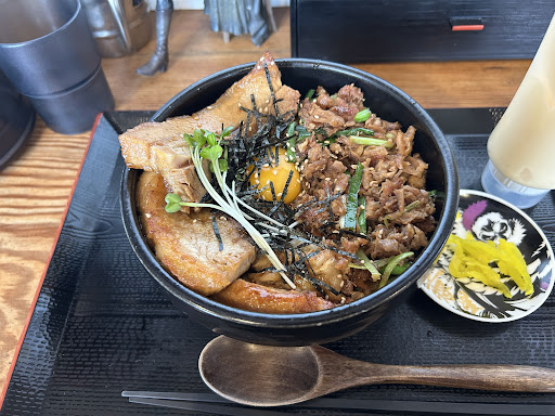 Read moreカレーが食べたくてインスタで金曜日が日替わりカレーを前から美味しそうで✨気になって食べに行きました。開店30分前に着いてしまい💦待つ事に!すると従業員の方からメニュー表を『どうぞ🎵開店する時にお声掛けますね』と丁寧な接客で!食べる前から気持ちの良い対応でした✨ いざ!開店♪お店に入ると😍ワンピースのフィギュアが沢山‼️マニアには堪らない光景が😍これは!凄過ぎて店内あちこち見てしまいました😆 いざ!金曜日のカレー日替わりを注文♪日替わりは『海老フライカレー丼』トッピングに温玉と辛さ激辛『メラメラ🔥』ご飯大盛り♪ 待つ間は♪見飽きないワンピースグッズ&フィギュアで注文のカレーがあっという間に来た感じでした😆 熱々のご飯にはカレーのルー😍辛みの中に絶妙なほのかな甘み‼️めっちゃ好きな味のカレー✨ めっちゃ!美味しいお店探してしまったと心の中で思ってしまうくらい美味しいカレーでした♪ペロっと完食😋……美味し過ぎて!他の丼も食べたくなってしまい!追加しちゃいましたw Wチャーシュー丼♪ご飯大盛り✨ こりゃまた美味し過ぎて!ペロっと完食😋 こんな追加今までした事ないです!それだけ美味しい丼でした。 店主さんも人柄良さそうで美味しい料理を作ってお客さんに喜んでもらいたい!っていう情熱伝わります✨ あまりにも美味しかったので😍次の日が29日だったので食べに行きました♪😆肉の日〔29日]限定!チャーシュー丼ギア5!ご飯特盛 これは!チャーシュー大好きな人!是非食べてもらいたい絶品です! 単身赴任で1人で来ましたが💦めっちゃ美味しいので今度♪嫁さんも連れて行きます✨ 店主さん✨美味しい丼ぶりありがとうございます♪これからちょ...