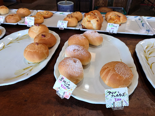 Read more長年経営されているパン屋さんです。気さくな高齢の御婦人が営まれています。私が以前伺った時は、丁度宅配業者の方が来られたのですが、御婦人が「何か好きなの持って行きなっせ」と言って、カレーパンを宅配業者の方にサービスで渡しておられました。 パンは15〜20種類くらい置いてありますが、売り切れるのが早く、11時頃にはほとんどないこともあります。全体的に小ぶりのパンが多いですが、ごまパンや芋パンなどはずっしりとしていて、びっくりするくらい餡が詰まっています。最近は一般的にはバターが香るパンが多いですが、ここのパンは小麦の香りを楽しめるパンです。生地も引きがあって美味しいです。 どのパンも美味しいですが、私はりんごパンとウインナーパンをよく買います。 ※写真は2年ほど前のものなので、値段は変わ...