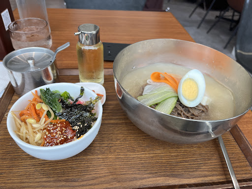 Read moreお得なランチをオススメされ注文しましたが、1人分にしては麺の量が多すぎて1/4ほど残してしまいました。 ビビンバは美味しかったです! ただ、冷麺の具のお肉が凄く臭くて噛んだ瞬間にダメだと察知してお皿に戻しました。 韓国料理は、流行り前から好きで色々な場所に行ってはいましたが、お肉の匂いがキツいところは初めてでした。。 店員さんにオススメされましたが残念です。