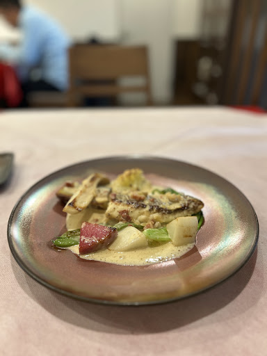 メインの魚のポワレですが、魚の切り身が大きいこと!! 2500円の値段でこんなに大きい魚を出してくれるのはここだけだと思います。 付け合せの野菜もキノコも大きく量も沢山添えられてて、さらにお腹いっぱいになります。