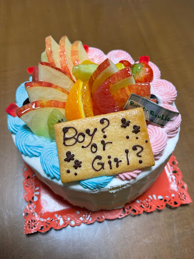 Read more熊本でジェンダーリビールケーキを急遽作ってくださるお店を見つけきれず、こちらに前日の夕方、突然オーダーしました。初めてのオーダーだったようで責任者の方が電話に代わってくださり、ネットで一度きちんと調べてから再度お電話にてオーダー内容を丁寧に確認して頂きました。急なオーダーだったので通常のデコレーションケーキの中身を青いクリームとバナナにする形でしたら大丈夫ですと言われ、前日に引き受けてくださるなら有難いと思って注文しました。実際に受け取りに行くと、通常のデコレーションと聞いていたのですがきちんとクリームの色分けをつけてくださっており、時間がない中で想像以上の対応をして頂けてとても嬉しかったです!実家に持ち帰る道中で傾けてしまい写真は少し崩れてしまった物ですが、お店で確認した時は完璧でした( ¨̮...