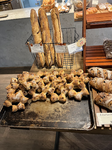 ハードパンで惣菜ものからシンプルなものまで幅広くそろえてあるので、選ぶ楽しさがありますね。実際にいただいてみましたが、丁寧に作ってあるのがよく分かるパンで、個人的にはすごく好みでした。次から次にお客さんが来るのも納得のような気がします。オーナーさんと思わしき女性の方がレジをされていましたが、こちらも対応が丁寧かつ笑顔が素敵で感じが良いですね。逆に他の店員さんは客のトレイ(お盆)をもらう時に「お盆ください」とかではなく「お盆!」というなど、あまり接客が良いとは言えないですね。この点は残念に感じました。あと、中央にフランスパンが置いてあるのですが個包装されずバスケットにそのまま立ててあるので、トレイにも入りきれず、トングで挟むこともできず・・みんな素手でとっているのかな?どうやってレジに持っていくのかわからない・・だからフランスパンは個包装にしてある方が買い良いかなと思いました。店内にはイートインもあり、今後さらに期待...