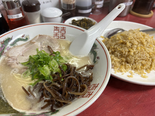 Read more某雑誌の半額企画で、行きました。 写真で、見る限り1番美味そうだったので 13時過ぎに行ったが、もう!半額のこってりは、売り切れました。他のラーメンならって事で しょうがないと思い友人と2人で、店に入店 すると!大将が2杯ならギリ行けますとの事で 濃厚こってりと餃子セットを注文! カウンターに辛子高菜が置いて有るので、ご飯大盛り無料を注文。辛子高菜は、嬉しいサービス 餃子は、可もなく不可も無く ラーメンは、背脂たっぷりで濃厚好きには堪らない味!麺にも絡んで美味いです。 文◯より、少しアッサリかなぁ〜 チャーシューは、硬くあまり美味しく無かった スープと麺のバランスは、抜群に良い! これで半額なら充分満足でした。 また行きたいって思う店です。 担々麺も!オススメって大将が言ってたので 次回は、担々麺を食べたいと思う。 ただ!駐車場が2台しか停めれない為近くのパーキングに入れて歩いた方が早くて良いと思う。 チャーシューと駐車場で、星4の評価 こってりが苦手なら、担々麺やアッサリも有るので、色々楽しめると思います。 昼は、40杯が限界って大将が言っていたので 夜の方が良いかも知れないですね。 大将の人柄が良く雰囲気も良いオススメです 健軍付近には、美味いラーメン屋が集まってるので、街よりもレベル高いし、安...