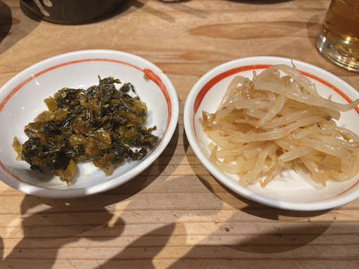 Read more今回は龍の家さんに初訪麺 レビューも多く人気店なのか待機席には数組の先客。メニュー表を見てオーダーを決めておくスタイルで待っている間にスタッフがオーダーを取りに来ます。 ただ店内には空席が幾つかあるのに待たされるのは… 5分ほどで着座。 セルフの麦茶、高菜と紅生姜、もやしがサービスとなっています。 サービス品を取る箸は毎回交換するスタイルのようで好印象。 3品食べるには袋の割り箸を3回開けることになりますが(笑)良いでしょう! 今回は、コク味とチャーハンをオーダー 5分程で炒飯、その5分後位にラーメンが着丼! 先ずは炒飯、シンプルに美味しい。 紅生姜が卓上にあるので街中華の様に 紅生姜で食べるのも◎ ラーメンはと トッピングはネギ、きくらげ、チャーシュー、辛味噌、もやし、マー油?ネギ油?という感じです。 スープは豚骨のみと思われるコクのあるスープで甘みと旨味がありますが割とあっさりしています。 ニンニクとネギの香ばしい香りが一瞬します、多分黒い油部分(笑) 辛味噌も乗っているので自然と混ざり味変に。それぞれ楽しむのは難しい。 麺は低加水の極細麺です。 小麦の香りがする良い感じ、ボゾボゾ感も少なめ。私はカタで食べました。 チャーシューは赤身が多めの醤油系 脂身は8:2位です。割としっかりめの硬さ。 プリンをオーダーする方が多く人気のサイドメニューなのか凄く気になりました。 スタッフの挨拶等は凄く気持ちがよく 満足出来る接客だと思います!