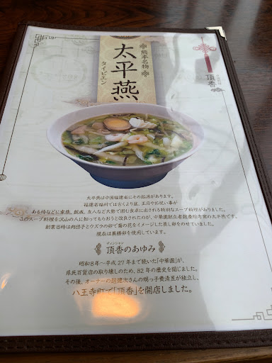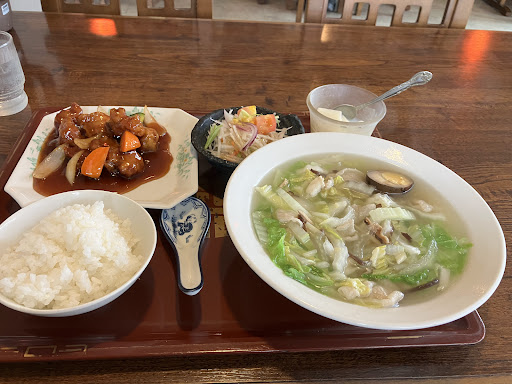 Read more八王子町の浜線裏通りにある町中華店で昼夜の営業ですが、定食は昼のみ頂けるようです。 ランチで伺い、太平燕と酢豚の2品がメインのあいのり定食(税込み1,210円)を頂きま した。 熊本県民のソウルフードとも言われる太平燕ですが、正直あえて外食で食べるほどのものじゃなかろうとの偏見から外食初の太平燕でした。 見た目のとおりかなりあっさり目の味付けでしたので、卓上には塩胡椒程度の調味料は欲しかったところですね。 ご飯はおかわり可との事で目当てにしていたのですが、おかわりは一杯のみとの事。よそい方も僅かばかり気持ち程度という具合のため、お代わり込みでもボリュームはイマイチ。また、お米の質なのか炊き方の問題なのかご飯自体も美味しいとは言い難いもの。 酢豚は筋張っており噛み切るのに難儀し、杏仁は薄味過ぎだったりと全般に残念なランチでした。 当然嗜好は人それぞれですし、物価高の影響もあるでしょう。町中華のランチは美味い安い腹いっぱいとハイレベルなところが多いので、そもそものハードルを上げ過ぎていたとも言えるかもしれません。 ヘルシーなランチを所望するなら、くどく無い味付けの太平燕系ランチはうってつけかと思います。 店内は全てテーブル席で30席程度はありそうです。 駐車場は敷地内に7...