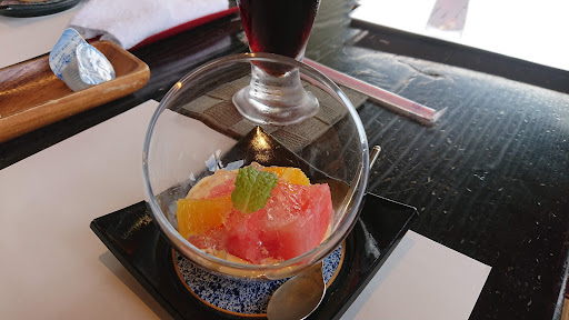 ただ一つだけ、わがままを言うならば 最後のデザートのゼリーはカルピスで作られてたみたいですが、和食のコースならばさっぱりとした果物のゼリー等の方がまとまり感があるとは思いました。