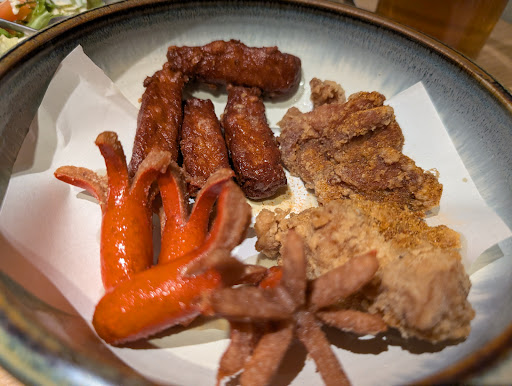 肝心な食べ放題のメニューはというと、肉寿司のシャリはパサパサで、バイトで寿司屋に入ってた身から言わせてもらえば作り置きして46時間は経ってる状態のシャリ。