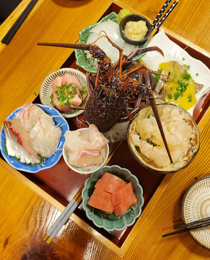 お料理については、女将さんの美味 しい食べ方の説明を受け、蟹味噌か らスタート❗ 新鮮な伊勢海老、真鯛等の刺身の盛 合わせ。 七輪焼きのお肉、車海老、そして、 鍋、雑炊等々。種類も豊富で本当に 美味しい。満腹😍 最後に私の大好きな冷たいデザート で締め、もう気分は、NAX😃⤴️⤴️
