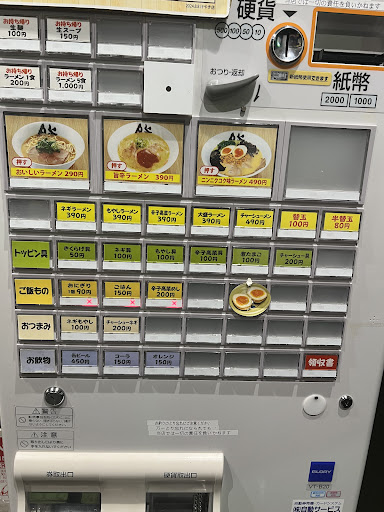 自販機で食券を買い(写真①)カウンターかテーブルでしばらく待つとラーメンがきます。 ちなみにお冷はセルフ。自分で注ぎに行きましょう。