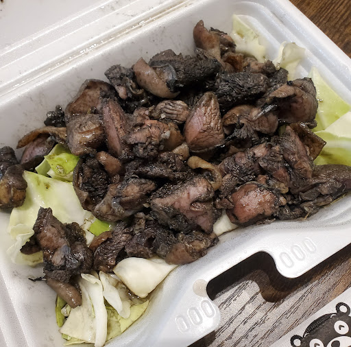 地鶏焼き➡️ちょっとお高めかと思いきや、量がすごい⤴️⤴️とても1人じゃ食べられる量じゃなく、地鶏だけに固いかなと思ったら、柔らかくミディアムレアで仕上げてあり、味も塩、胡椒に秘伝のタレでしょうか、今まで食べた地鶏とは一線を介する美味しい地鶏で、敷き詰めたキャベツに味が染みて食感、味とも完璧な🌟5