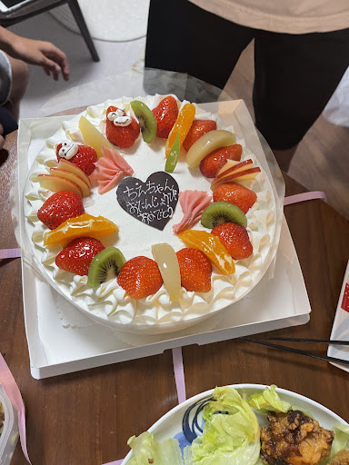 よく通る道沿いにあるこちらに、相方の誕生日ケーキをお願いしました。相方とは色々と行き違いがあったりで、しかも、誕生日2日前に追突事故を受けちゃって、一年しかたたない車がメチャメチャで凹んでて…。せっかくなら大きな誕生日ケーキで少しでも明るい気持ちにしたくて、受け取りに行く当日の朝イチに電話して、サイズアップ出来ないか聞いてしまいました💦ただ、快く応じて下さって、こんなに素敵なケーキを用意して下さって本当に感謝しています。笑顔で家族といる相方見て幸せな気持ちになりました❗️味の方ですが、本当に甘さがくどくなくて、フルーツとの相性がいい。子供な達も、4分の1くらいモリモリ食べてた😁ひとつ気になった事といえば、メッセージプレートがちょっと小さくて、アンバランスになっちゃってた💦私が急なサイズアップお願いした事もあってかな😅とにかくオススメなケーキ屋さん...