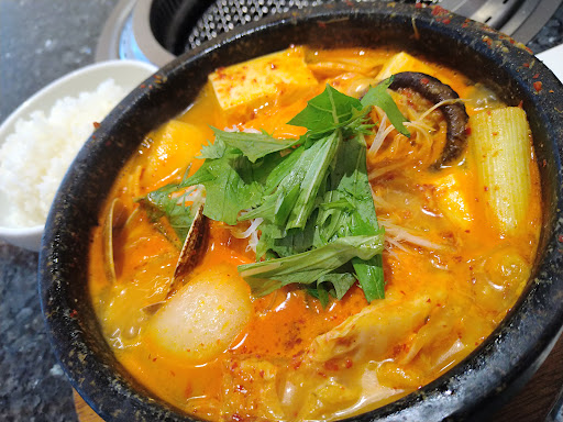 男女平等なんて謳わないでよね!飲み放題、男性1600円、女性1200円。ああ!女に生まれてよかった! というわけで、ランチで突撃。あ、もちろん、飲み放題を頼みますよ。単品で飲み放題があるのは、ポイント高い!おまけに、翆ジンソーダや、マッコリも選べるの!嬉しすぎる! 飲み放題を頼むのは迷わないんだけど、メニューはなんにしようかなあ。焼肉よりは、韓国料理な気分だな。ビビンパと接戦の末、豆腐チゲに軍配があがりました!おねがいしまーす! スタッフさん、申し訳無さそうに、チゲはお時間かかりますが、よろしいですか?と。ええ、ええ。なにも問題ありません。ランチセットにはサラダバーがついてるんだもん。レタスやオニオンはもちろん、自家製豆腐や白和え、ホワイトアスパラのピクルスまで。じゅーぶん、酒の肴になってくれるのです。いやあ、いたれりつくせり。 翆ジンソーダの二杯目を飲み終わった頃、豆腐チゲ登場。うわあ、ぐつぐつ美味しそう!でも、焦って口に運んではダメ!でっかい椎茸には気をつけて!かぶりつくと火傷しちゃうよ!はい、自分のことです。 程よい辛さの豆腐は、お酒も進んじゃうね。って、あれれ。イカ、海老、アサリもたっぷり入ってるじゃない。なんてこった。嬉しい誤算。海鮮チゲは値段が高いから豆腐チゲにしたんだけど、これでじゅうぶんだよう。 サラダとチゲ、おなかいっぱい食べても、さあ、もう1度立ち上がるんだ。サラダバーにはデザートも充実。ワッフルにプリンにスイートポテト。ぜんざいまであるけど。。。うう、無念。完全制覇までは辿り着けず。 スタッフさんもきびきび動いていて、快適に過ごせますよ。たっぷり食べたいときや飲みたいときに!次はビビンパで飲もうっと!