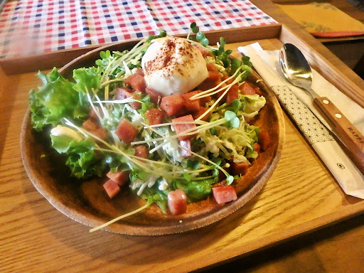 この日のランチは「ハンバーグとグラタン」のランチでしたので、それを注文しました。お皿には他にもスープやサラダが付いてきて、バランスが良く、大満足の一皿でした。ハンバーグはジューシーで、グラタンもクリーミーでとても美味しかったです。また、野菜もしっかりと入っており、彩り豊かなプレートでした。グラタンにはシーフードも入っていて普段は家庭では作れないような味わいがあり、ちょっとした贅沢を楽しめました。
