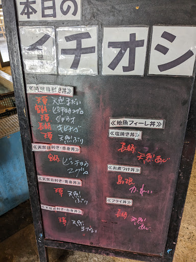 fish restaurant next to fishmarket is very popular. 海鮮丼 fresh seafood w rice bowl, fresh seafood lunch, and other available there.