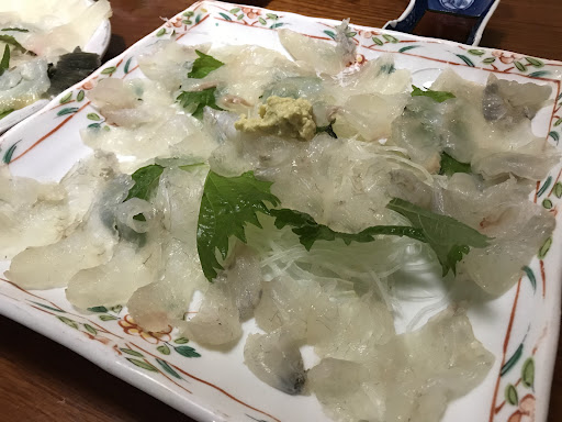 途中生きたクエや調理したばかりのヒラメの刺身(かなりの大きさ)、天ぷら用のアナゴを見せに持ってきました。 でも実際に私たちが食べるように出されたのは少しの端切れ。天ぷらランチのアナゴはアナゴ?と言えるような端切れ(8センチほど)。あまりにひどい様にみんな落胆。 悪徳商売としか思えないようなひどい時間でした。 何故見せに持ってきた?